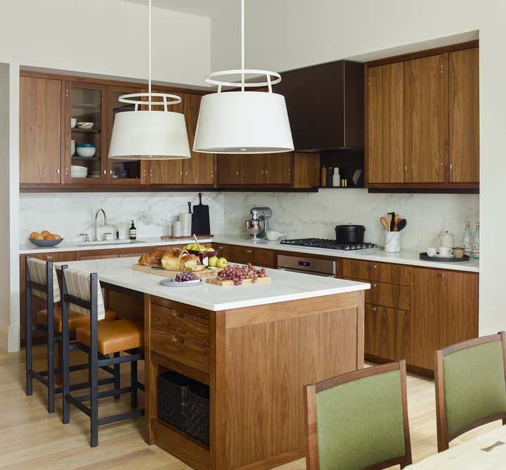 an extra 400 sq. ft. so we could create a four-bedroom apartment, with a Master suite to include a home office with walk-in closets. The family’s media room was conveniently relocated off of the kitchen with a custom seven-foot-wide pocket door to allow for more formal dinner parties.