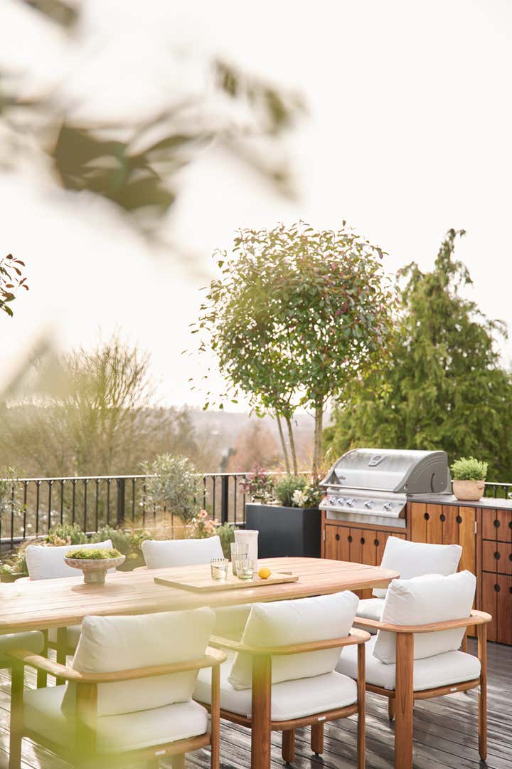 This isn’t outdoor space as an afterthought, it’s part of the architecture of the penthouse. The boundary between inside and out is softened, with living spaces designed to flow naturally onto the terrace for slow mornings, long lunches and evenings that drift under the trees.
