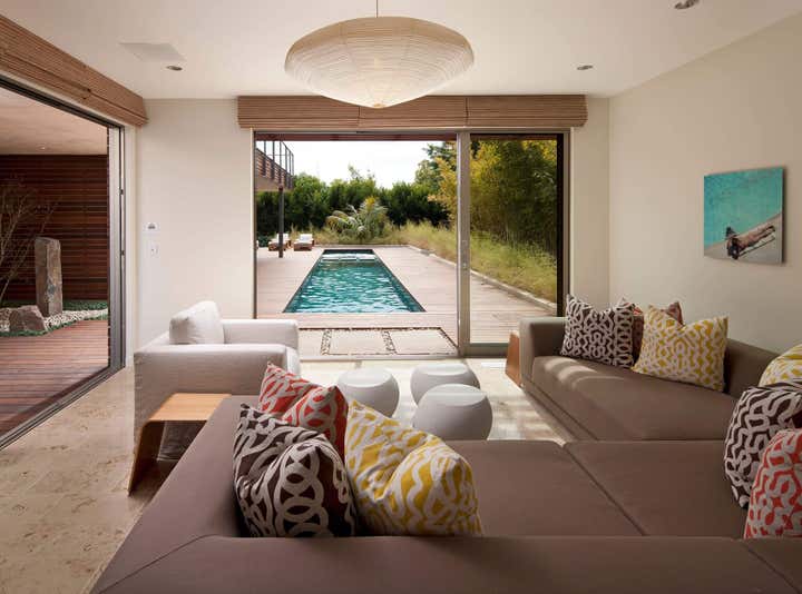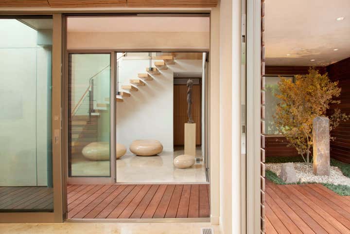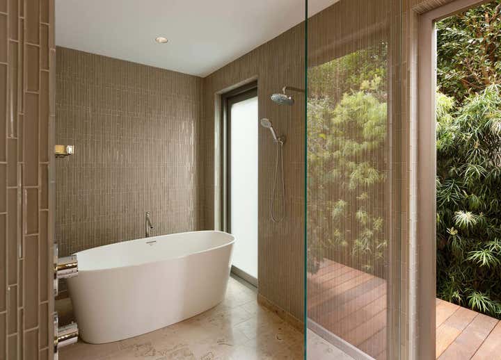 Maienza+Wilson received a commendation from the county supervisor for their Net-Zero and LEED Platinum sustainable beach house in Santa Barbara. A Butterfly roof design holds the solar water heating and photo voltaic panels. This home produces as much energy or more than it consumes! The architecture of this MW design reflects a truly indoor / outdoor California lifestyle. John and Gregg designed “Garden Bathrooms” and an open entertaining environment. With MW’s understanding of relaxed luxury combined with ingenuity and a modern interior design style, Maienza+Wilson has created a luxurious compact beach compound all in 3000 sf on a 1/4 acre lot.
