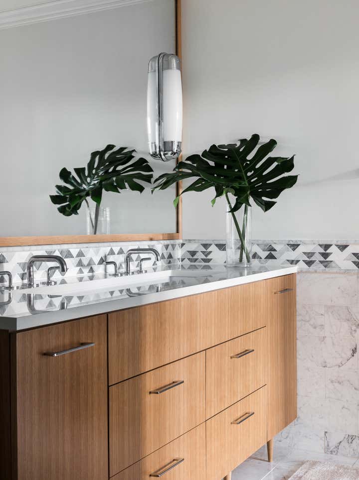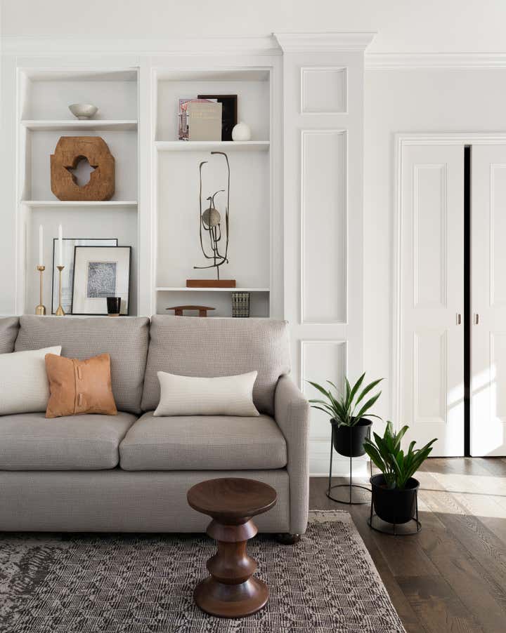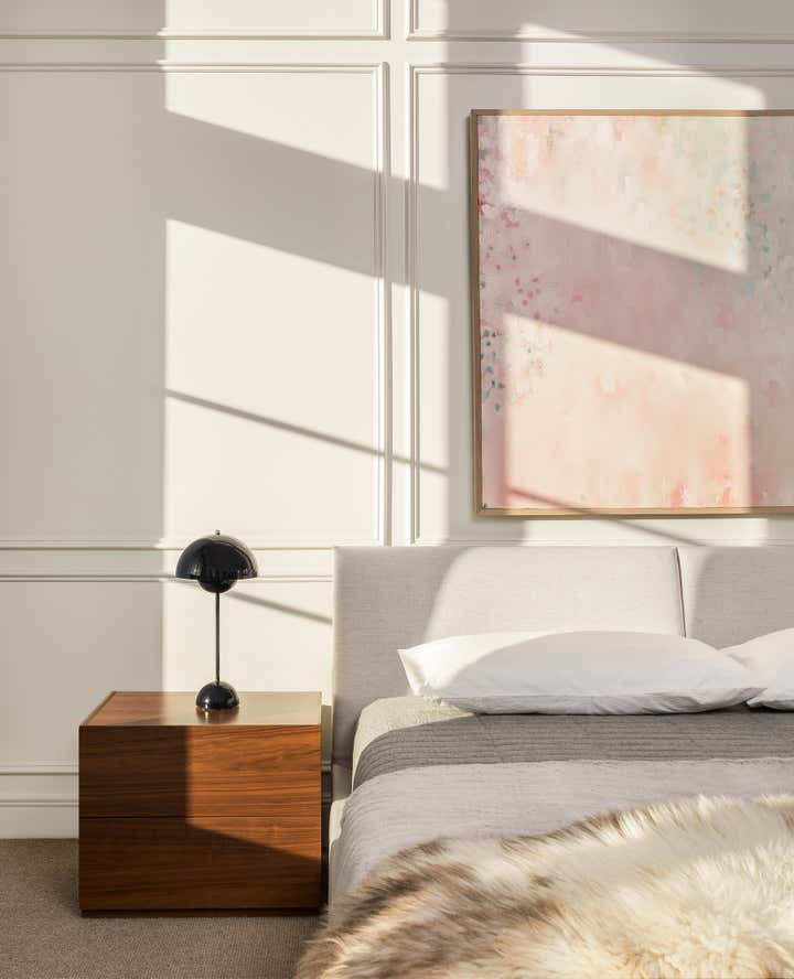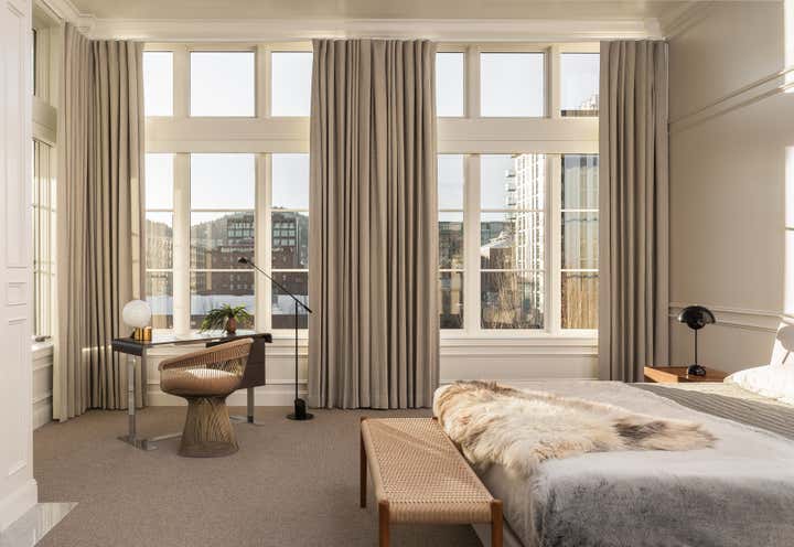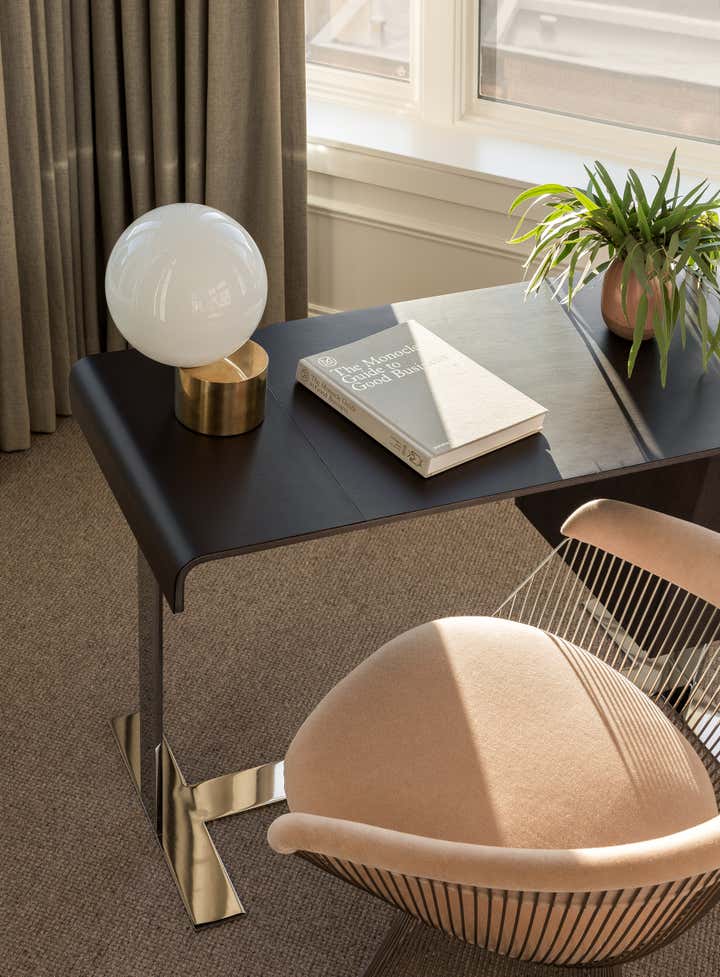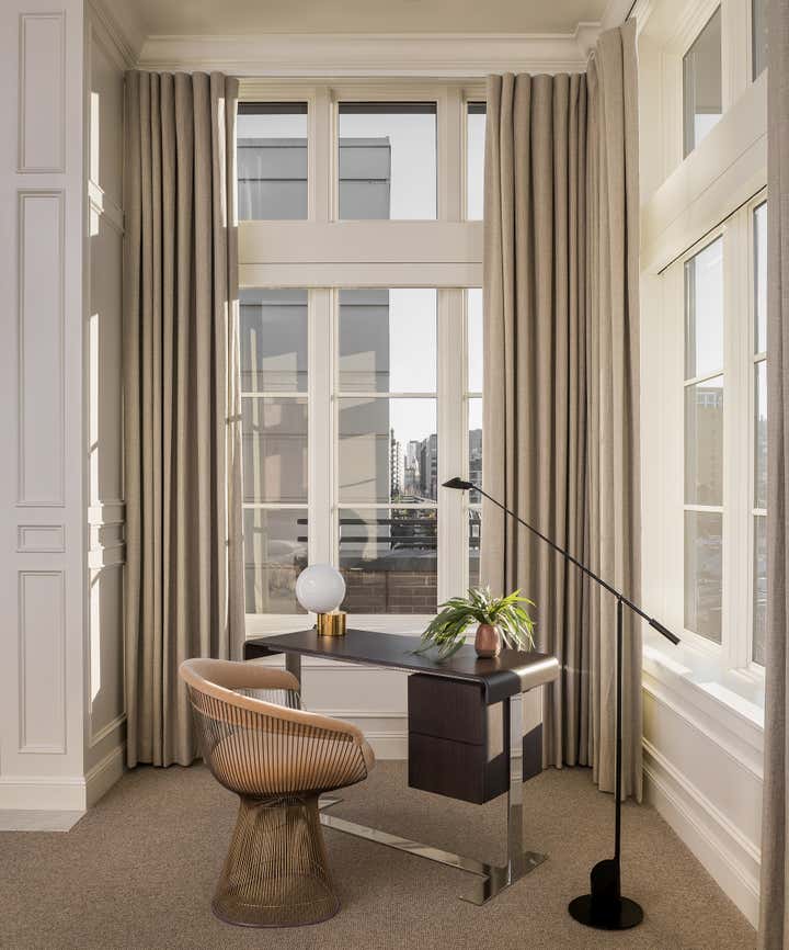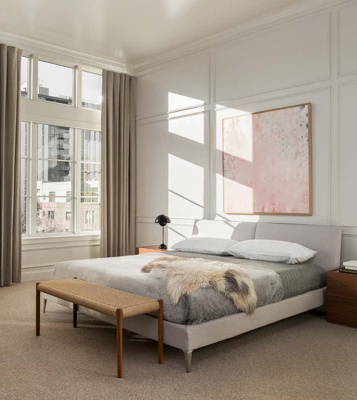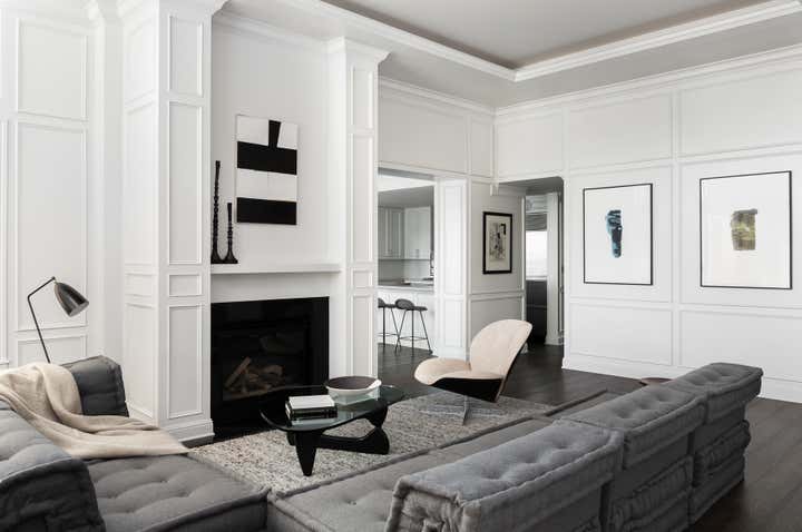 This penthouse condominium was transformed from dark paints and heavy cherrywood paneling to a light, airy pied-a-terre.