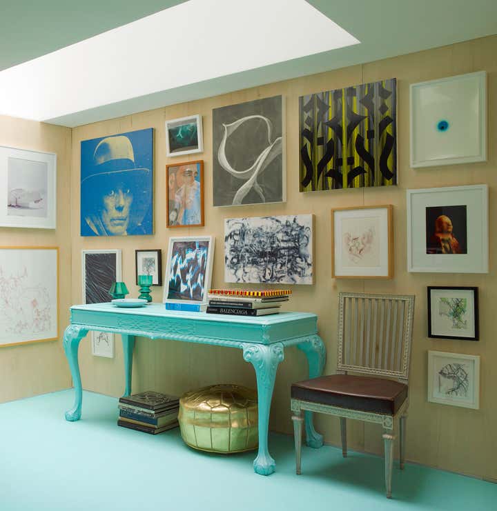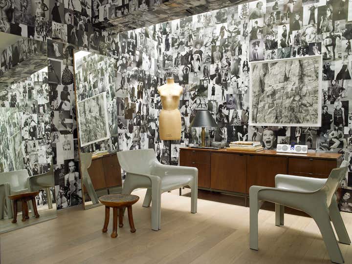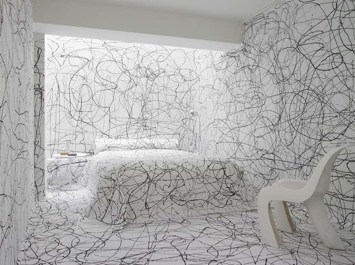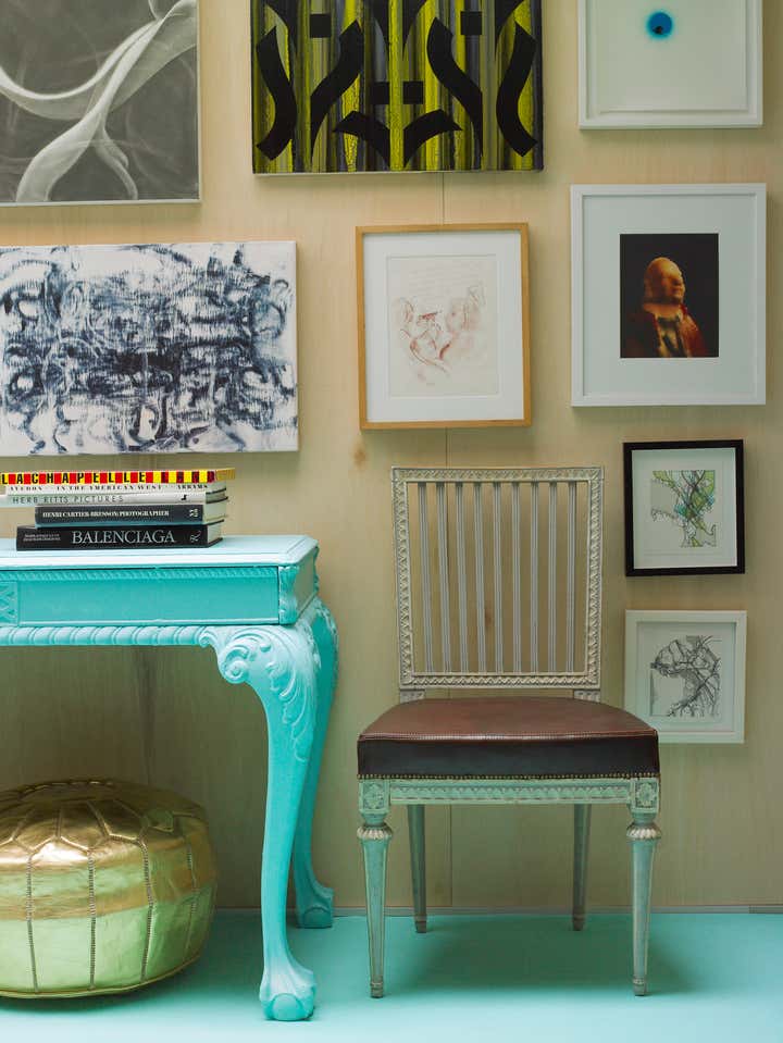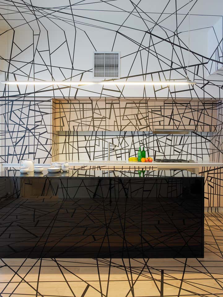This is a very cutting edge project. The space (a duplex apartment in New York's Chelsea district) was designed for an old collage friend of Meyer's (she is a New York fashion designer and we both met at Parsons School of Design summer school when we were both fifteen) - She and her husband approached Meyer and said they wanted something completely different and wow! They both really are not into color - which created the basis of the all black and white theme - the central hall/gallery is the only color added to the space with the resin turquoise floor and matching console - this area is also used as a showroom for her collection. Each room uses a different technique and materials to create it's environment. Meyer generally refers to his interiors as more conceptual than decorative.