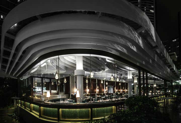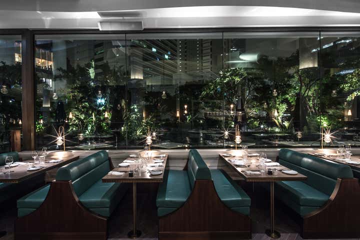 The concept for the interior respects the iconic architecture designed by Heatherwick Studios and creates an emerald green interior referencing Hong Kong's lush Peak. The restaurant measures 324 square meters and features a total of 185 covers. Rowley Leigh is Chef-Patron.