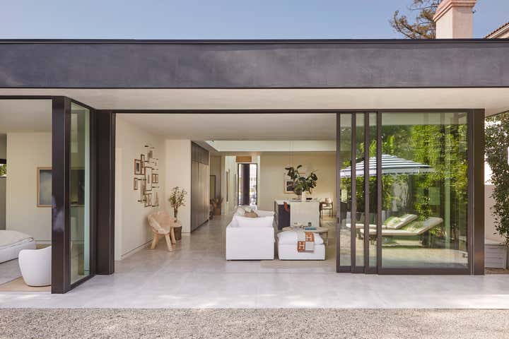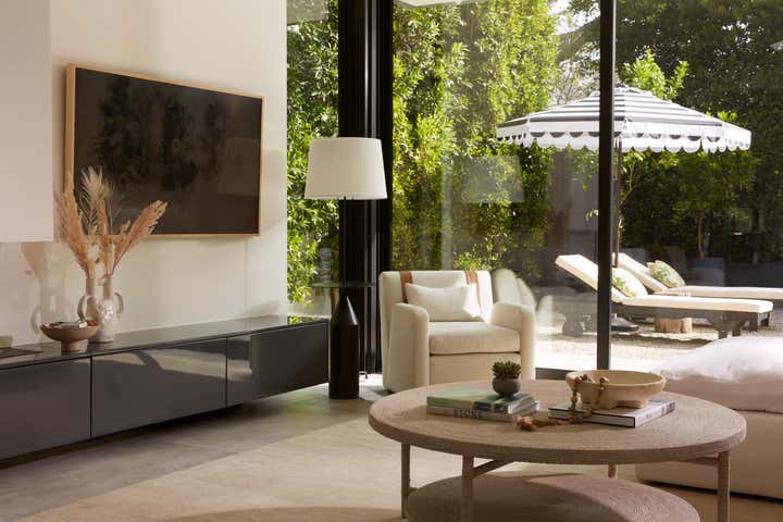 Our clients are a young couple who relocated from NYC because the husband sold his reality production company to a bigger firm located in Los Angeles. We immediately bonded over our love of the Hamptons and we agreed that this cold, modern frame of a house must be warmed up and we would use a Hamptons style contemporary beach house as inspiration. It was all about adding organic forms and warmth throughout. Shortly into our design process, they were pregnant - very exciting and we jumped into doing a bold really fun nursery - wallpaper is by House of Hackney, rug by Armadillo. As soon as we finished their home, Covid hit and the couple left to rent a few homes in the Hamptons to ride out quarantine closer to their family as they just had their baby son. Once back they had an even greater appreciation for what we had done which felt great to hear. Their home feels incredibly comfortable, warm, and is a perfect place for them to raise their young son. We look forward to helping this couple with their Hamptons home soon! Home featured in California Home and Design in March 2021.
