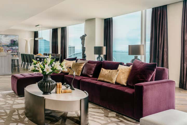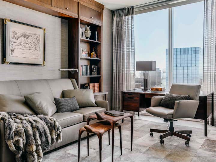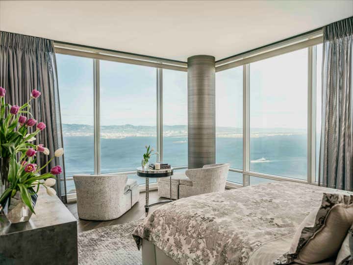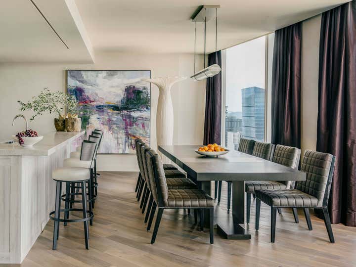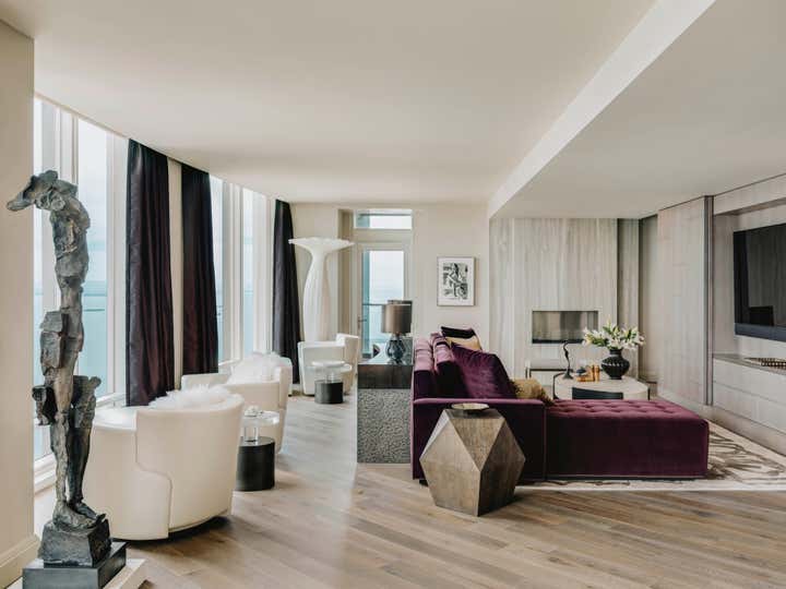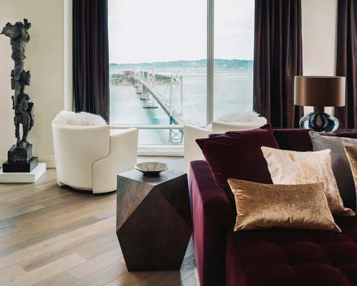 This residence is a penthouse pied-à-terre in San Francisco's luxurious Harrison Building. The couple wanted a place designed with both sophistication and comfort to enjoy the city, their semi-retirement and their family.