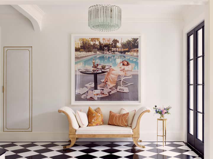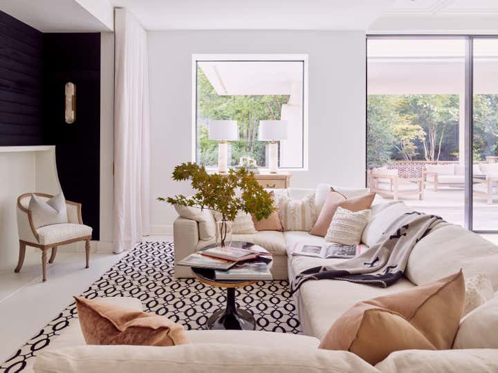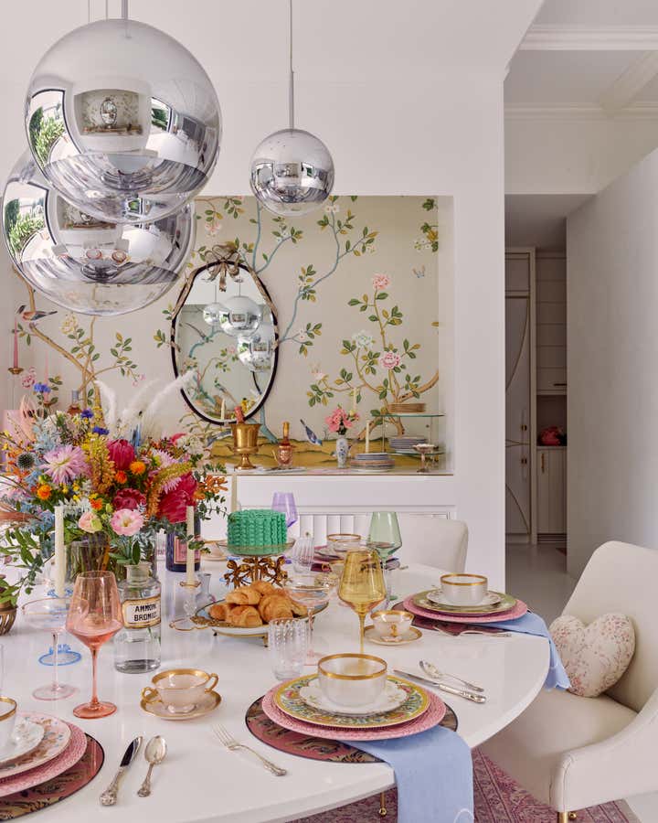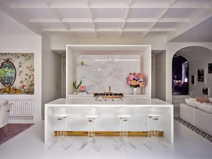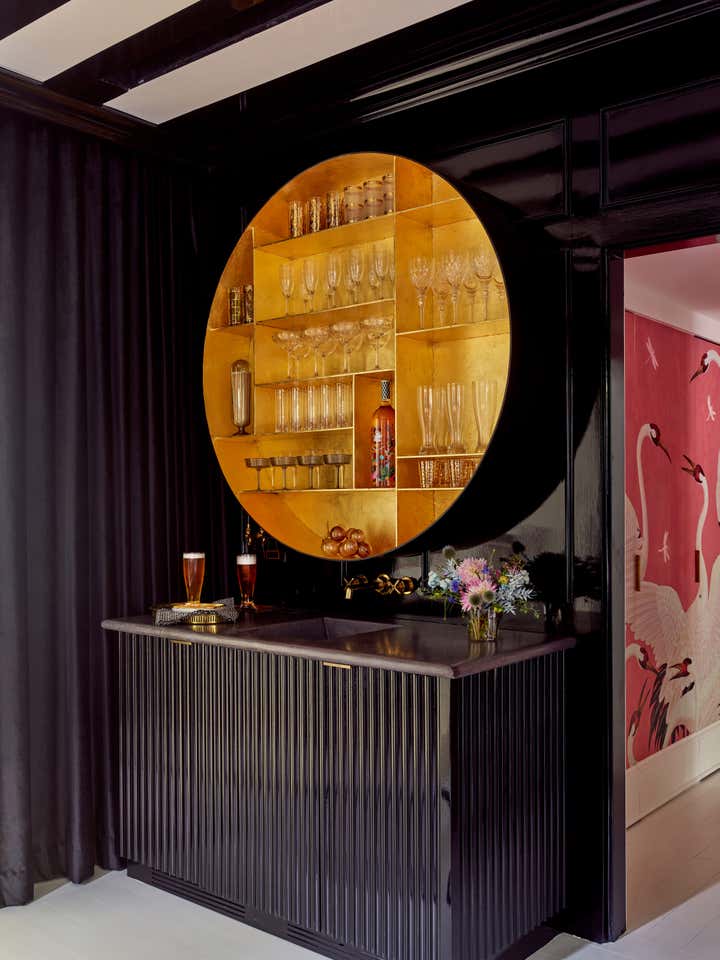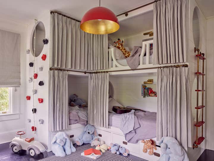 The closet is a show stopper, but the rest of the house is just as fresh and fun. While the house is in a traditional neighborhood, the interiors are anything but. A true reflection of this fun young family, this beautiful house incorporates so many special details that speak to the clients - a bunk room with a climbing wall for the boys, a motorized curtain and hidden beer tap in the bar, a concealed powder room in our client's favorite Gucci wallpaper, the list goes on...