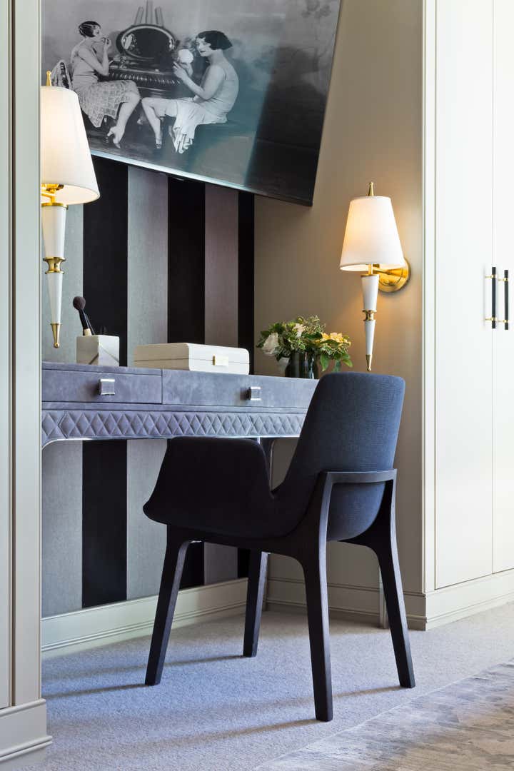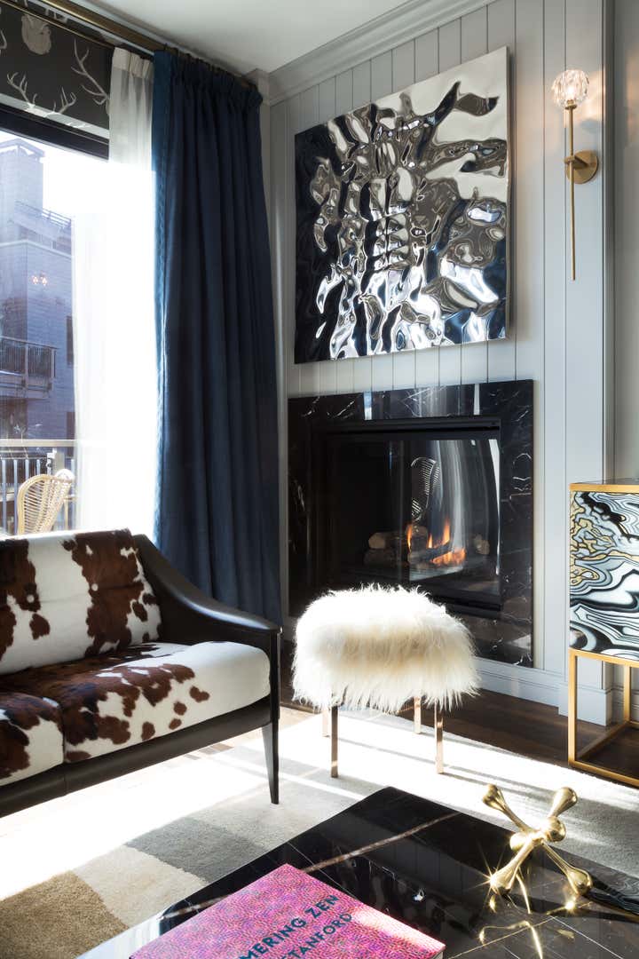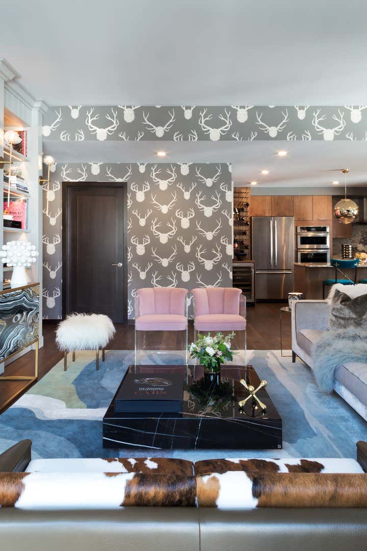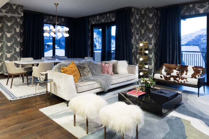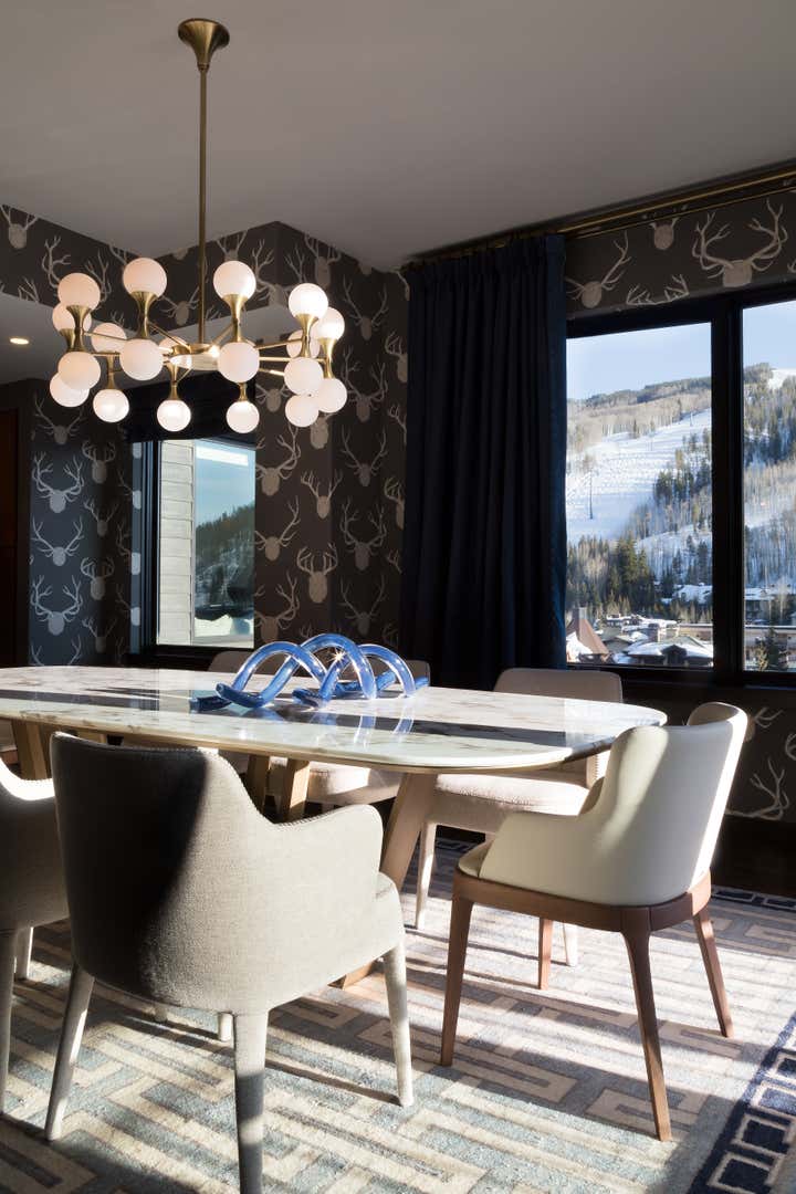 The interior design proposal for this condo in Vail, Colorado can be summarized as contemporary style with mid-century touches in a luxurious atmosphere. To achieve a warm and elegant atmosphere, the studio opted for natural finishes and colors in walls, adding wallpapers with fun patterns that give each space its own identity and very unique to the city in which the apartment is located. For the furniture chosen for the project, there are iconic pieces by great designers such as the re-edition of the Dessa sofa by Gio Ponti by Poltrona Frau and the timeless 6700 club chairs by Vladimir Kagan. All the elements of the space achieve an unexpected synergy giving the apartment a very unique and fresh personality.