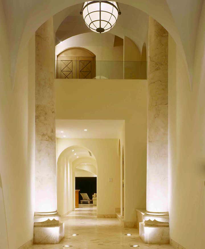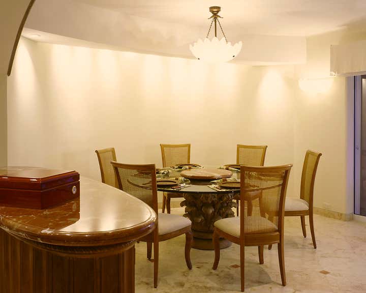 A 3 level townhouse strated with the upper two levels penthouse then converted. Total new split level foyer with massive limestone columns, balcony. Main bedroom terrace walk down vaishing edge spa.Glass landing steps. Tropical details