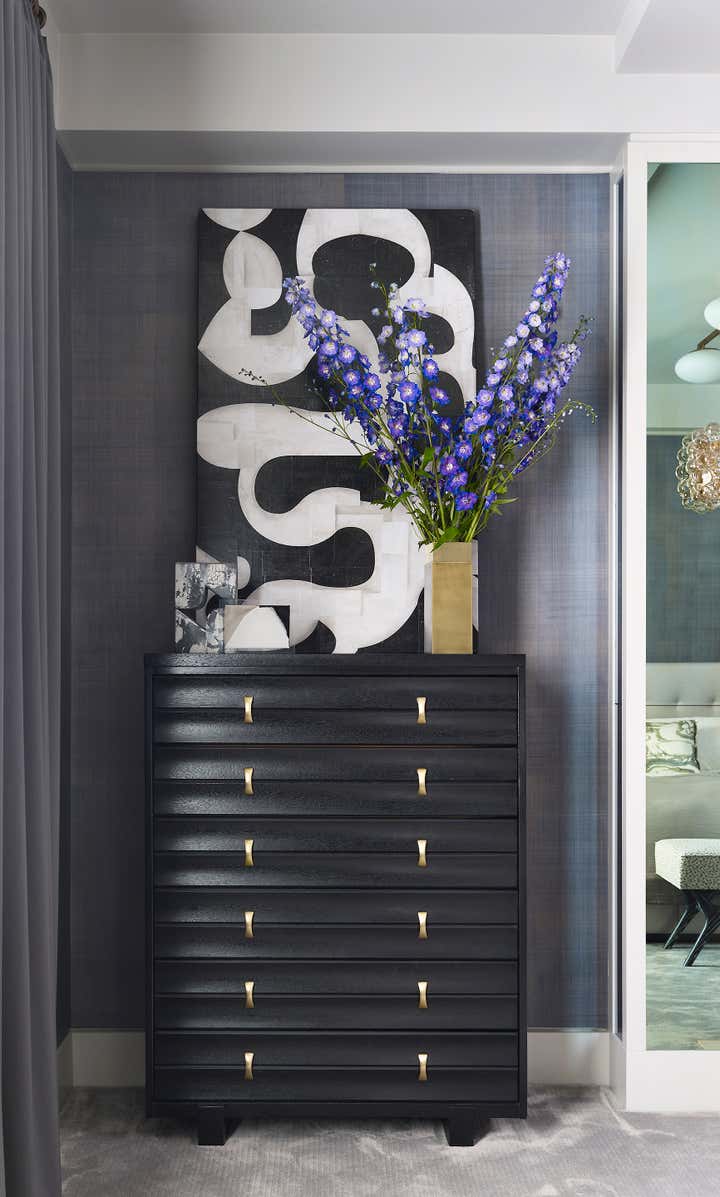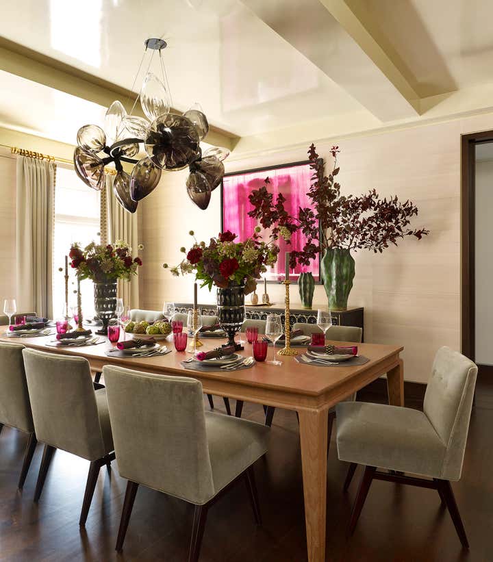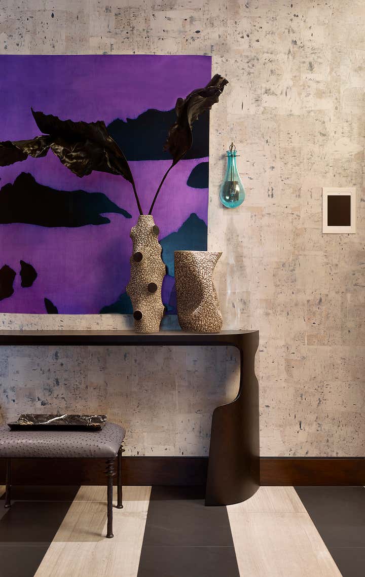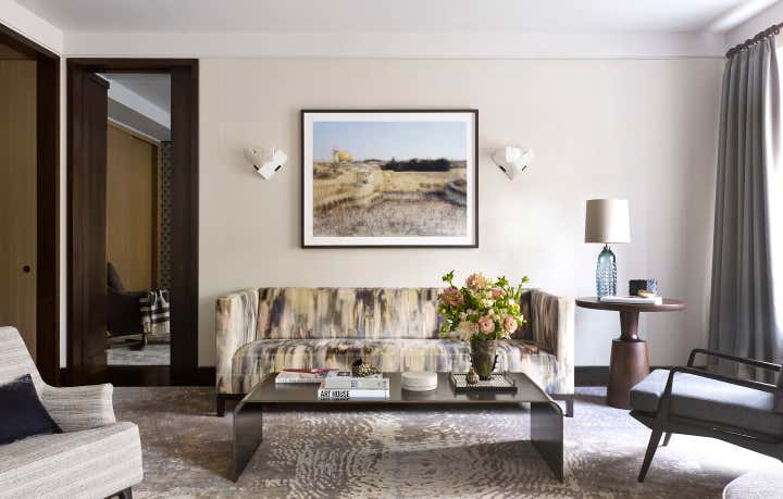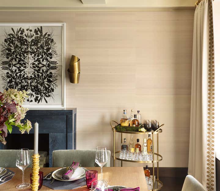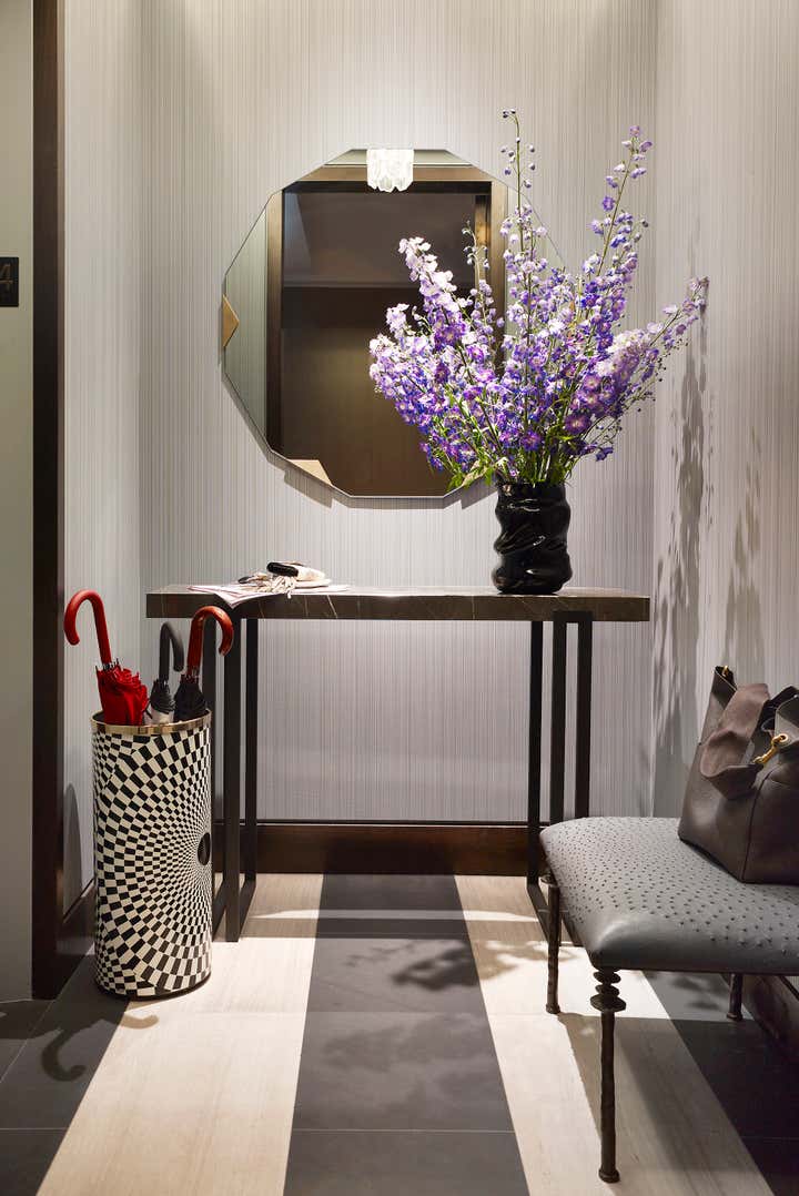 A grand apartment in an historic building that was gut-renovated and re-designed along with Douglas Wright Architects. The interiors of the apartment were modernized to reflect the client's taste and the furnishings were a mix of high-style new pieces and mid-century antiques. The clients have a large family and entertain often; they wanted a space that could be both formal and comfortable. The focus on textures in stone, wood, wall coverings, fabrics and rugs added warmth and character to the project.