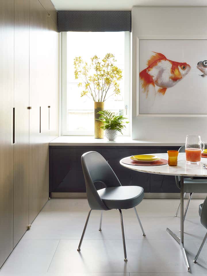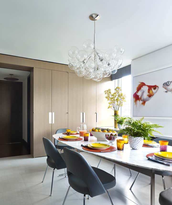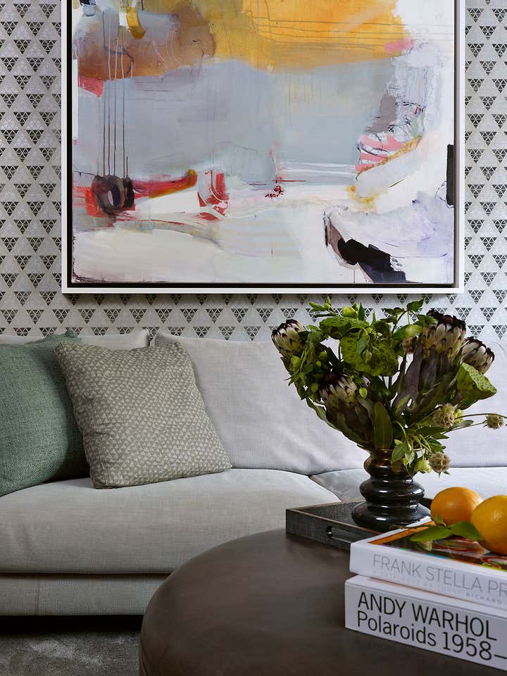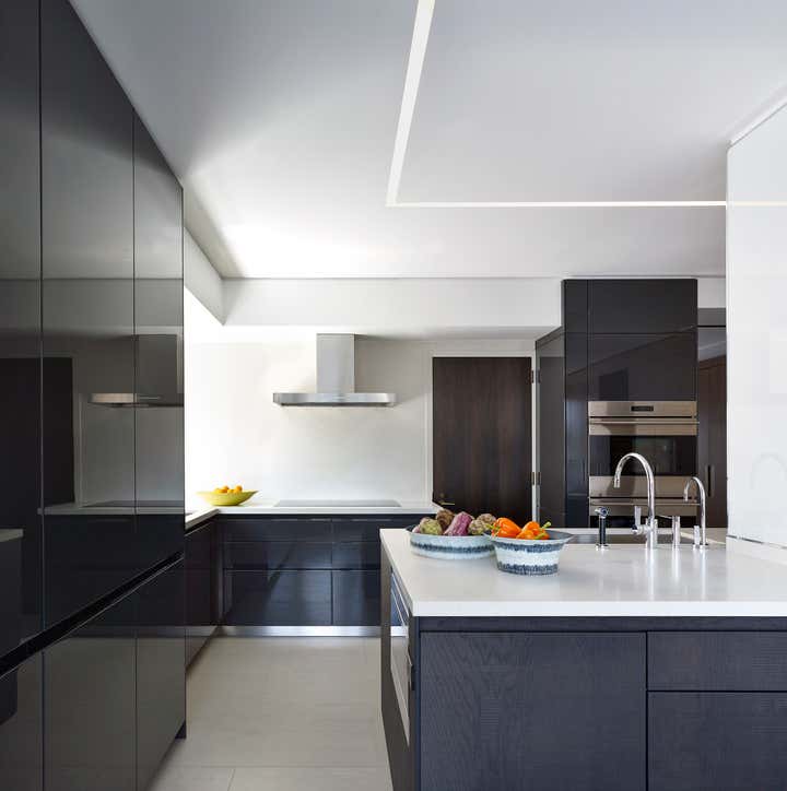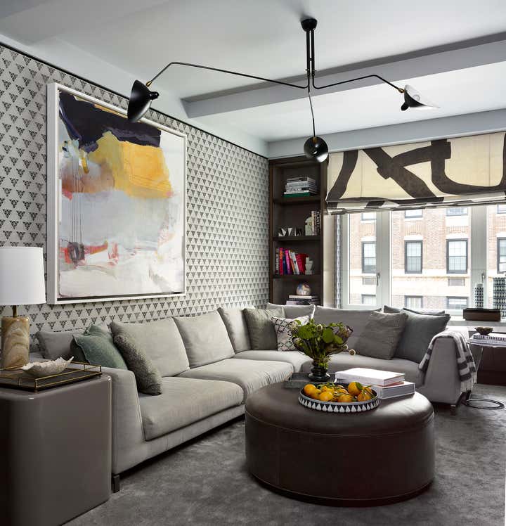 A grand apartment in an historic building that was gut-renovated and re-designed along with Douglas Wright Architects. The interiors of the apartment were modernized to reflect the client's taste and the furnishings were a mix of high-style new pieces and mid-century antiques. The clients have a large family and entertain often; they wanted a space that could be both formal and comfortable. The focus on textures in stone, wood, wall coverings, fabrics and rugs added warmth and character to the project.