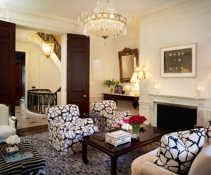 A quintessential upper east side townhouse with a refreshing twist brought on by contemporary art and bold pops of color.