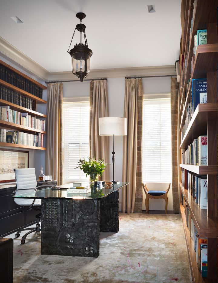 An Upper East Side Townhouse is given an update that respects its historic identity without being bound to the past. A living environment for a family that includes work areas and the ability to do lots of casual entertainment was created using furnishing an lighting from many different design eras.