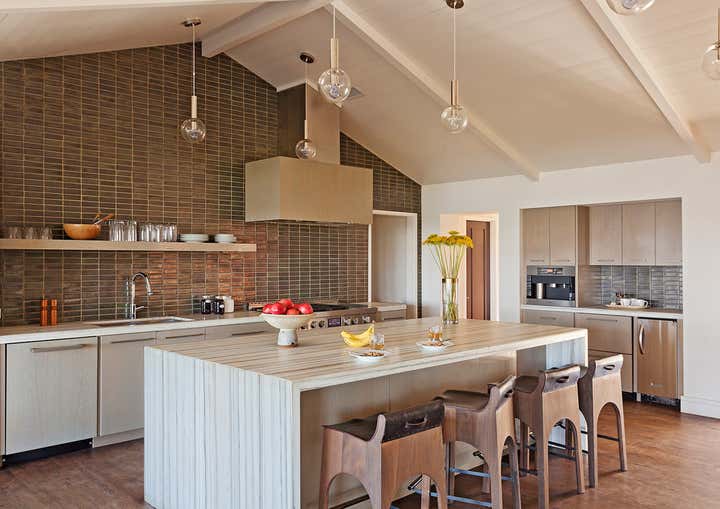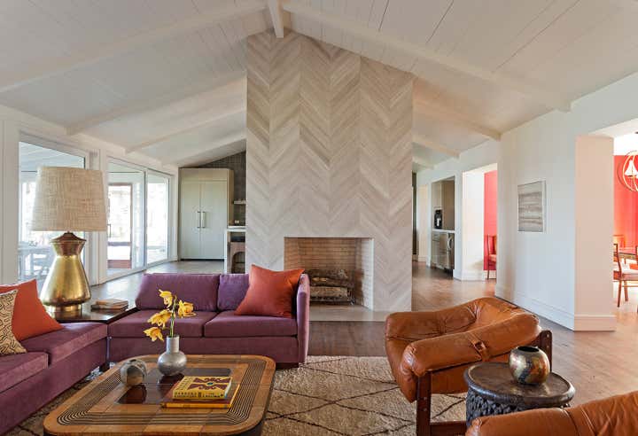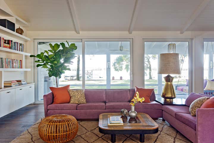 This waterside one story home was renovated and designed for modern day living. Walls were removed creating an open kitchen and living space and large windows were added along the back overlooking the water and dock. We played up the homeowners love of color and originality.
