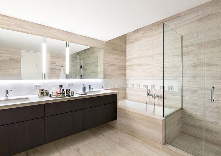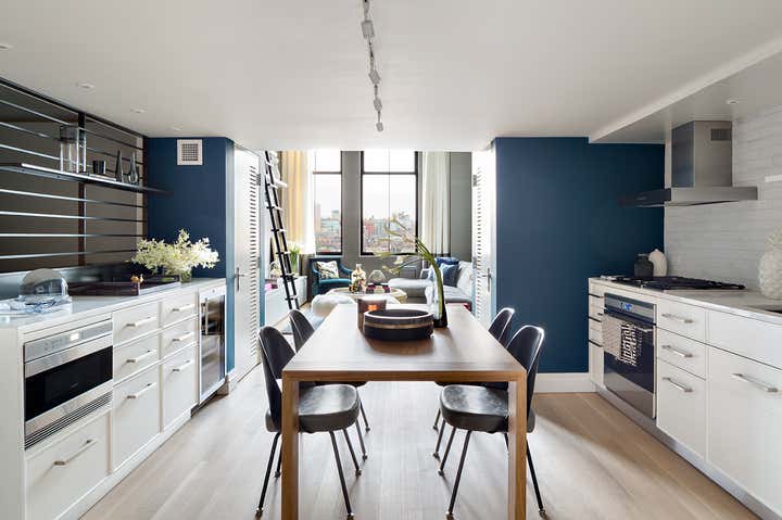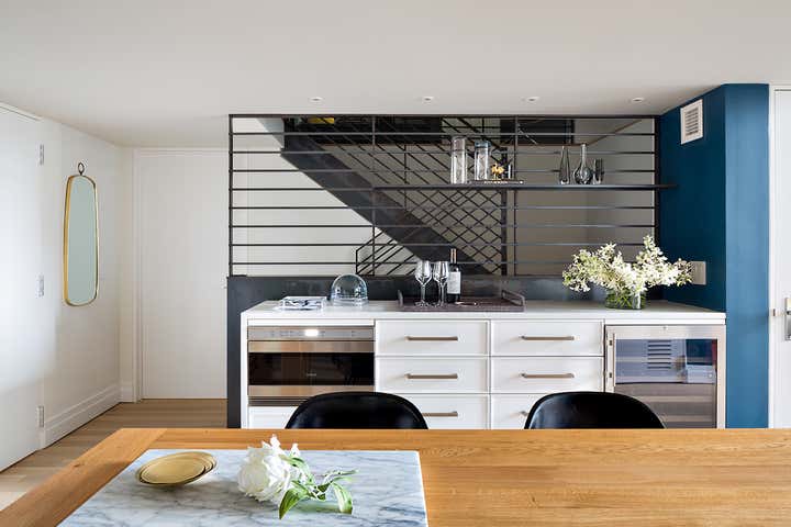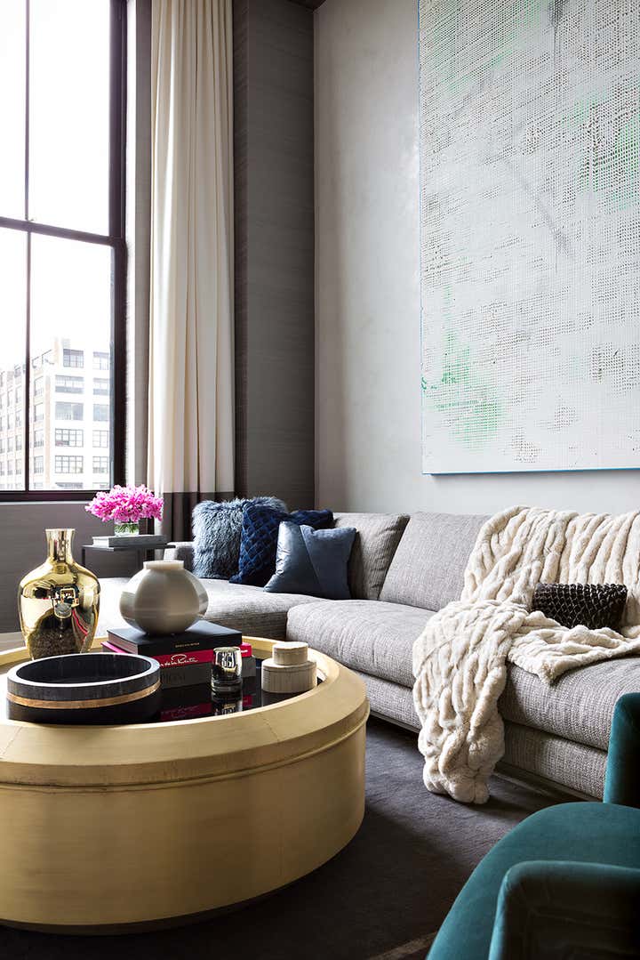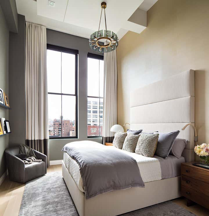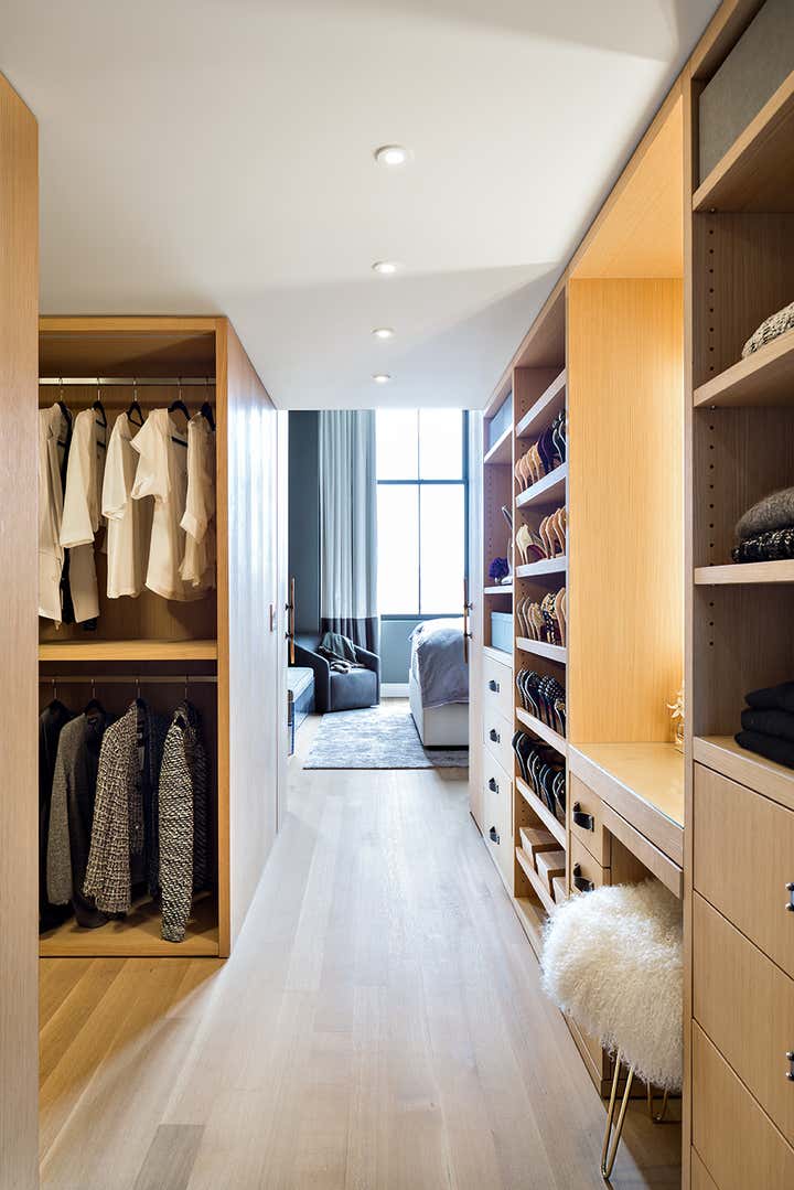 For this Printing House apartment, the client encouraged Workshop/APD to fully embrace rich fabrics like Chinese silk, textures like Venetian plaster, jewel tones, and metal finishes. The team seamlessly and inventively integrated mid-century modern elements with a glamorous contemporary style. Must-haves included a custom walk-in closet reflective of her love of fashion- to be used as a full-scale dressing room.