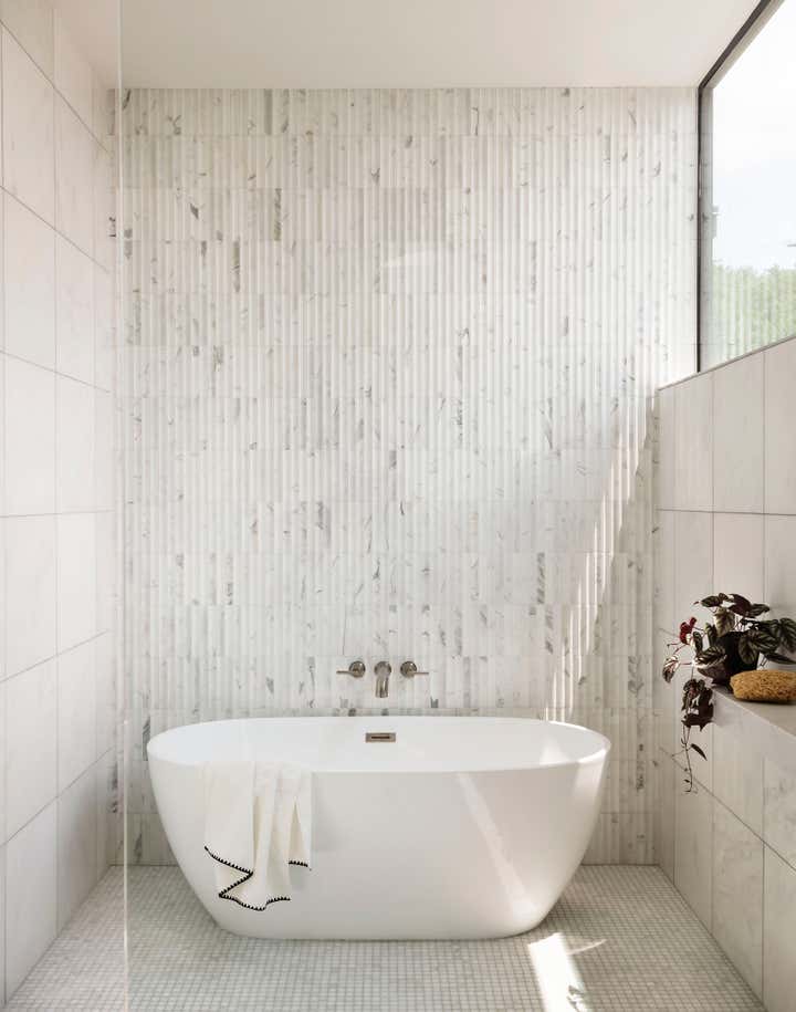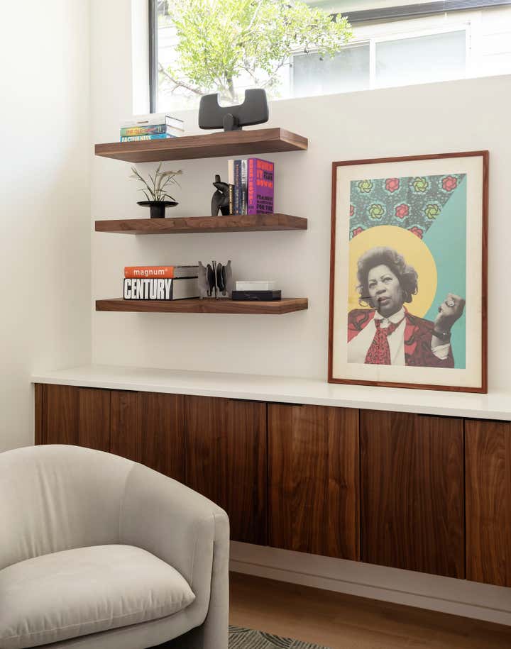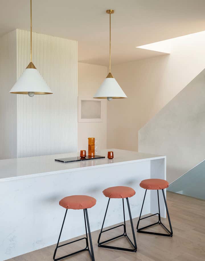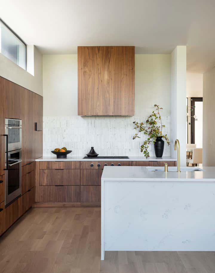 Designed by principal Sara Cukerbaum of SLIC Design for a young family in tech who recently relocated from the Bay Area, the residence evokes the feeling of an urban sanctuary, drawing from the surrounding environment. The home consistently features woodwork details, natural hues and textured accents while also keeping a minimalistic aesthetic.