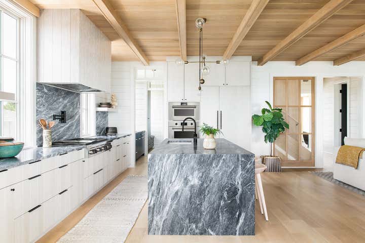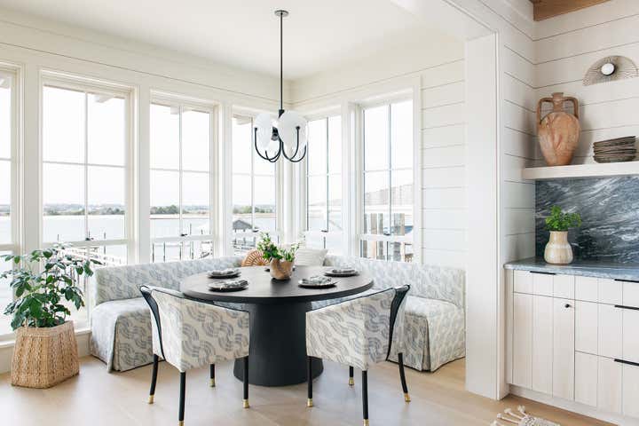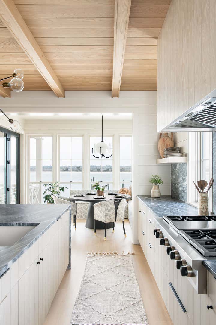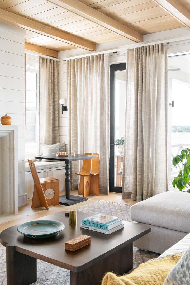 A waterfront beach house featuring clean, coastal, modern architecture. There was a thoughtful process to the selection of interior finish materials that did not compete with one another - all in an effort to maximize the views of surrounding waterways. The interiors showcase a simplified colored palette of neutral wood tones, creams and whites, black and charcoal.