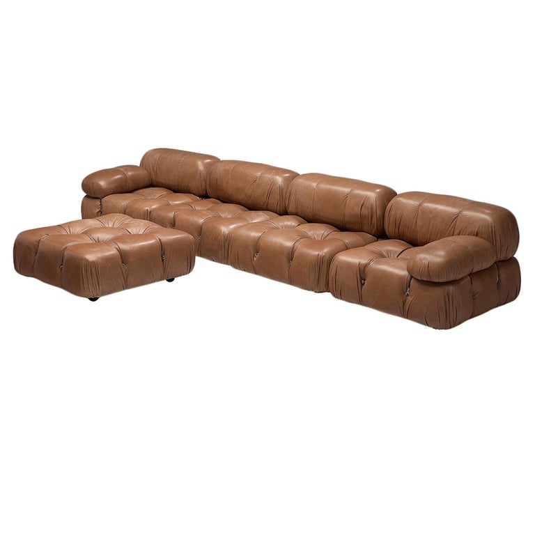 Large Modular Camaleonda sofa cognac-colored leather M.Bellini original 70s